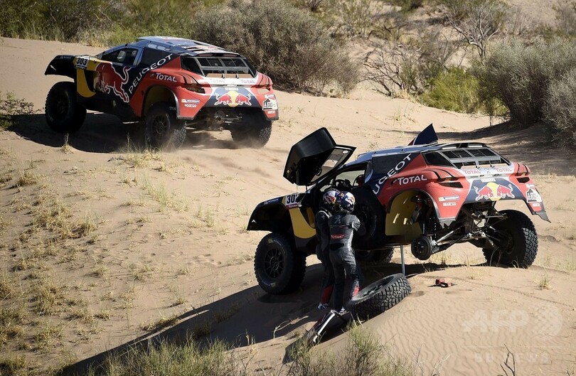前日のステージでマシンを横転させたプジョーのセバスチャン・ローブ(Sebastien Loeb、フランス)は、この日も砂に苦しめられ、砂丘で何度も足止めを食らった。