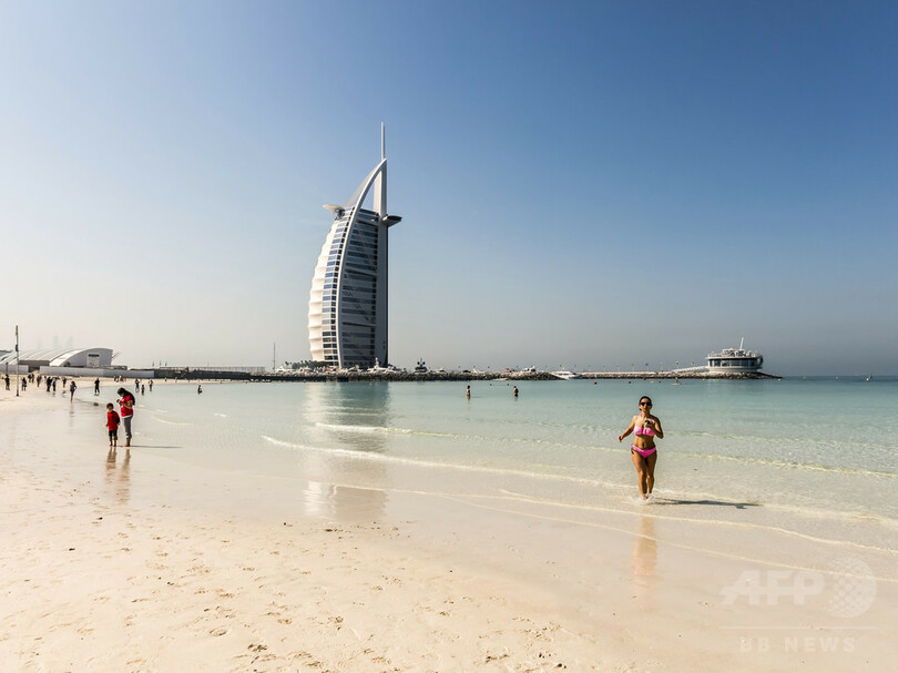 高級ホテル「アトランティス・ザ・パーム(Atlantis, The Palm)」を擁する巨大リゾート人工島「パーム・ジュメイラ(Palm Jumeirah)」のすぐ隣に位置するジュメイラビーチ(Jumeirah Beach)は、アラブ首長国連邦(UAE)のドバイ(Dubai)の主要観光地の1つ。7月から10月までは海水温が33度に達し、観光客に人気だ。暖かい海でリラックスしたい旅行者にとってペルシャ湾(Persian Gulf)は理想的な場所だ。地元の人々は、涼しいプールを建設する傾向にあり、自然の海にはそれほど関心が無いようだ。