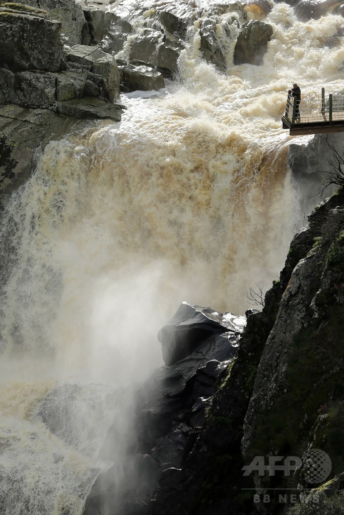 滝は、ポルトガルと国境を接するアリベス・デル・ドゥエロ自然公園(Natural Park of Arribes del Duero)内にあり、雨で増水したウセス(Uces)川が流れ込んでいる。(c)AFP