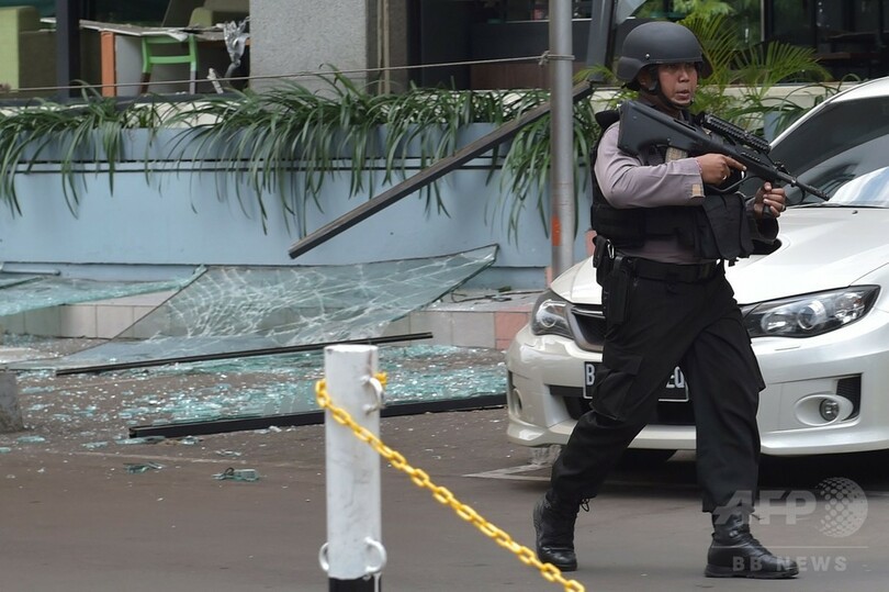 現場は商店や大使館、国連(UN)関連事務所などが集まっている地区で、爆発は米コーヒーチェーン大手スターバックス(Starbucks)でも発生。インドネシアのジョコ・ウィドド(Joko Widodo)大統領は事件を「テロ行為」と断じた。