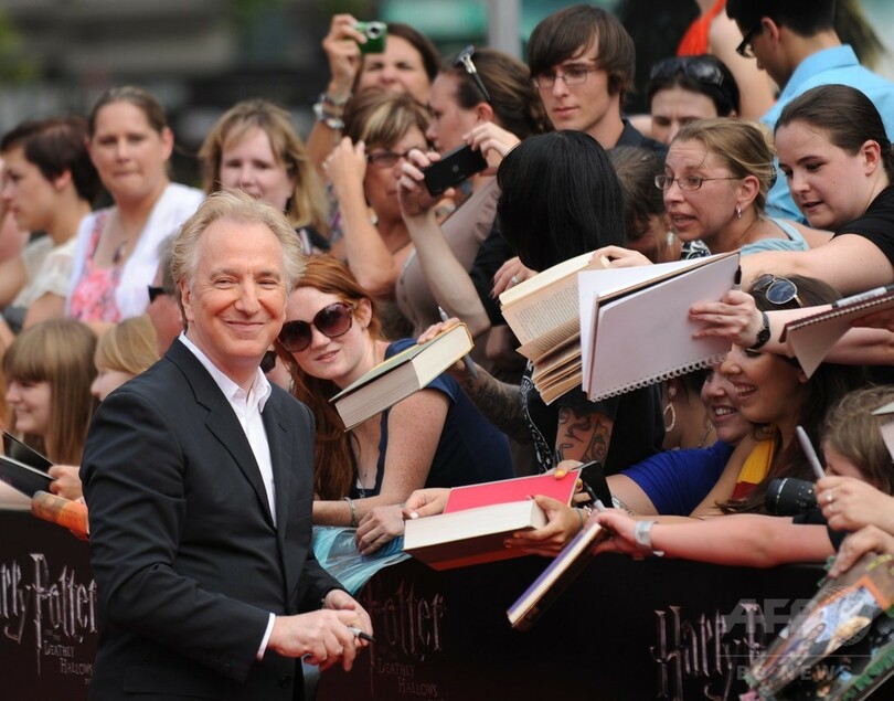 原作者のJ・K・ローリング(J.K. Rowling)さんは、リックマンさんの訃報に接し、「ショックを受け、悲しみに打ちのめされた」と述べ、「彼は素晴らしい俳優であり、素敵な男性だった。私たちは皆、偉大な才能を失った」とのコメントを寄せている。(c)AFP/Robin MILLARD