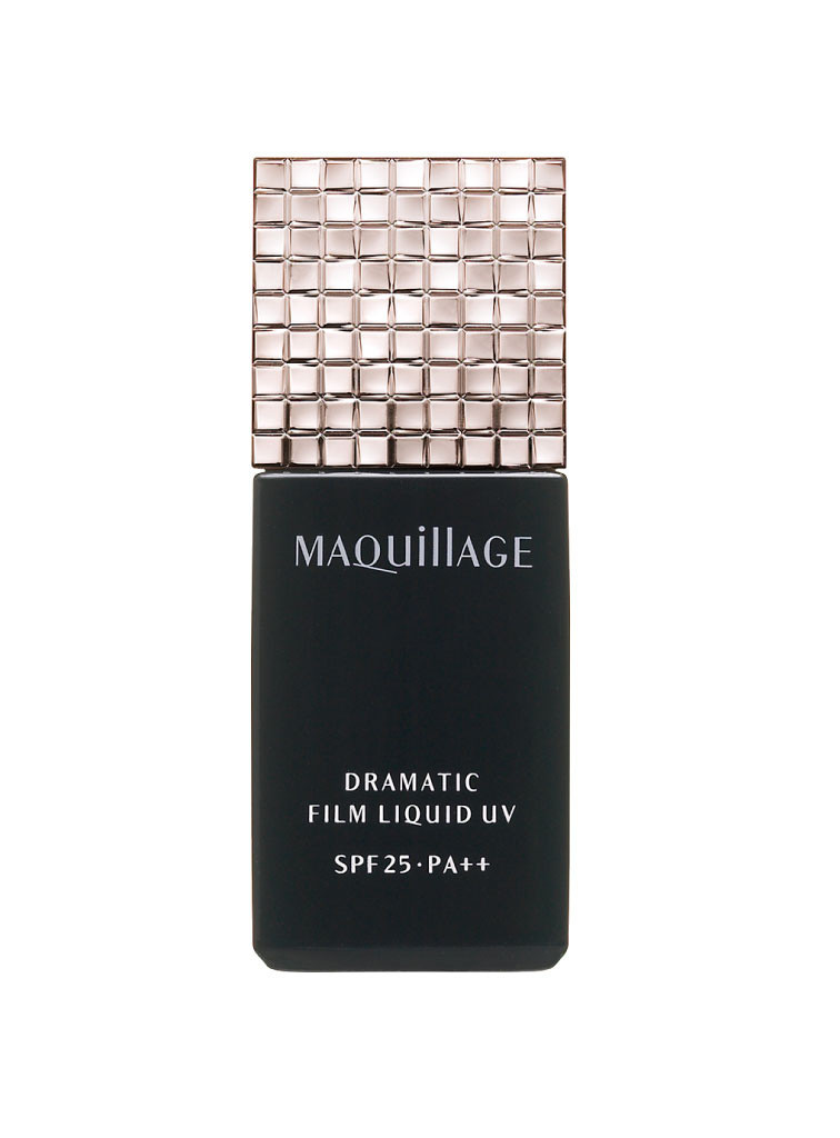 リキッドファンデーションの「ドラマティックスキニーフィルムリキッド UV」は、軽くとけこむテクスチャーで、つけていることを感じさせない極薄の光膜を形成。毛穴やキメの乱れをカバーし、肌を引き締めるようなフィット感で、素肌から顔立ちのフォルムまで美しく見せてくれる。