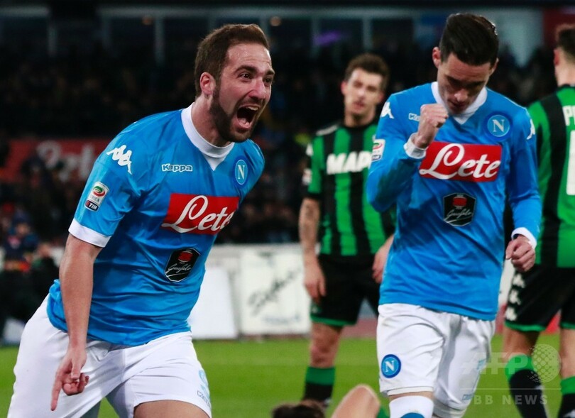 【1月17日 AFP】15-16イタリア・セリエAは16日、第20節の試合が行われ、ナポリ(SSC Napoli)はゴンサロ・イグアイン(Gonzalo Higuain)が2得点を記録し、サッスオーロ(US Sassuolo)を3-1で退け、リーグ首位の座を守った。イグアインは今季公式戦20試合で20得点をたたき出している。