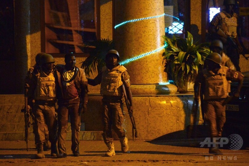 人質らは襲撃が始まってから約2時間後に救出された。少なくとも20人が死亡した四つ星ホテル「スプレンディッド(Splendid)」の最上階では16日早朝も、フランス軍特殊部隊の支援を受けたブルキナファソ軍の兵士と、国際テロ組織(Al-Qaeda)系の武装組織の銃撃戦が続いている。全147室の同ホテルは、国連(UN)職員や外国人がよく利用していた。