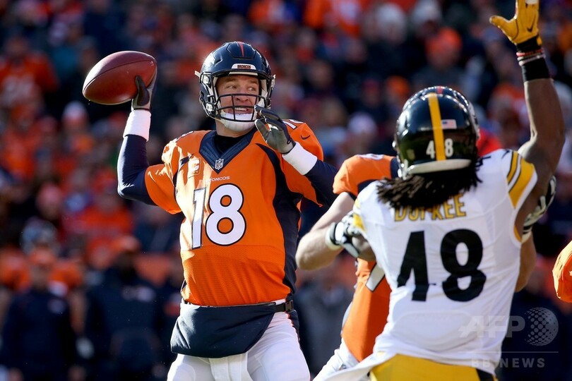 この後ブロンコスは、マニングが7分近くをかけた14回のプレーで65ヤードを獲得し、アンダーソンのタッチダウンにつなげた。ツーポイントコンバージョンで点差を広げたブロンコスは、ピッツバーグが時間を使い切ったため、正式に勝利を手にした。(c)AFP