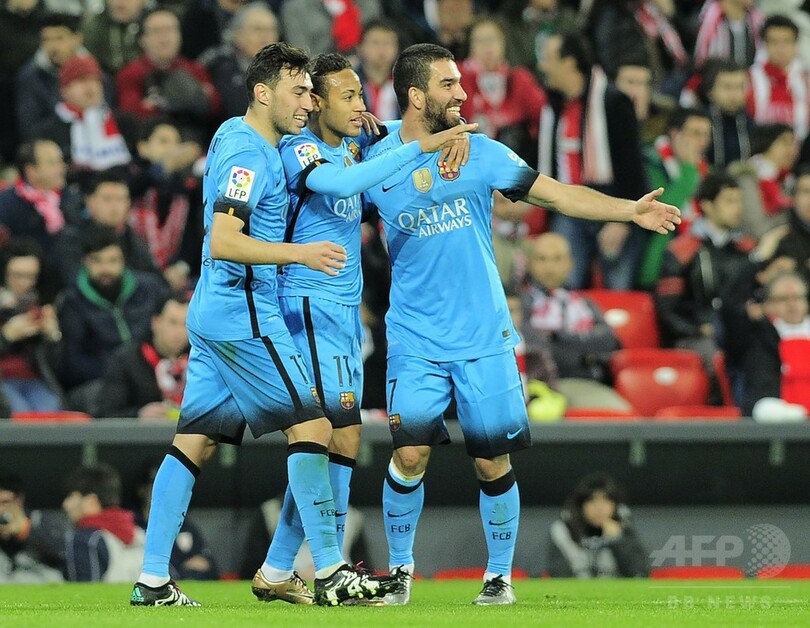 【1月21日 AFP】サッカースペイン国王杯(Copa del Rey 2015-16)は20日、準々決勝の第1戦が行われ、FCバルセロナ(FC Barcelona)は2-1でアスレティック・ビルバオ(Athletic Bilbao)に先勝し、ベスト4に前進した。
