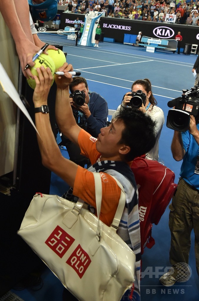 錦織は、2012年と昨年の全豪オープンでベスト8に進出しており、オープン化以降、日本人男子では最高成績となっている。(c)AFP