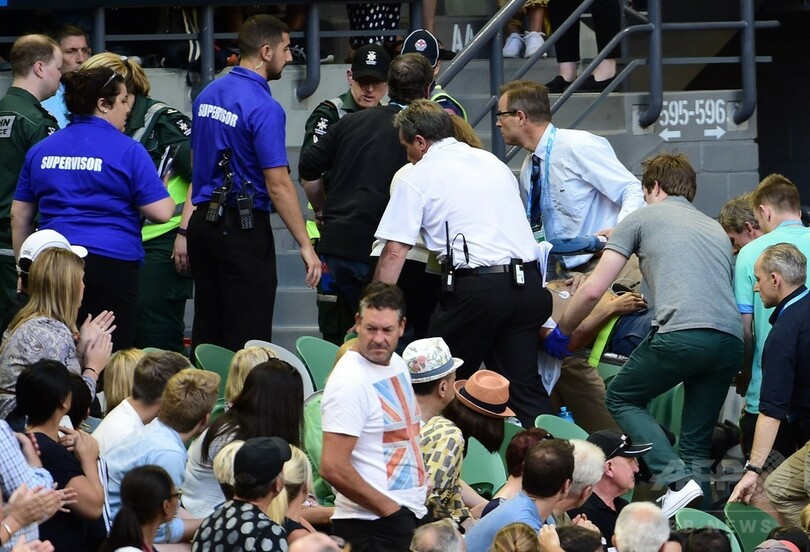 この日、イワノビッチが6-4、1-0でリードを奪いながら第2セットを戦っていた場面で、58歳のシアーズさんが体調不良を訴えると、救急隊員が担架で同氏を運び出した。