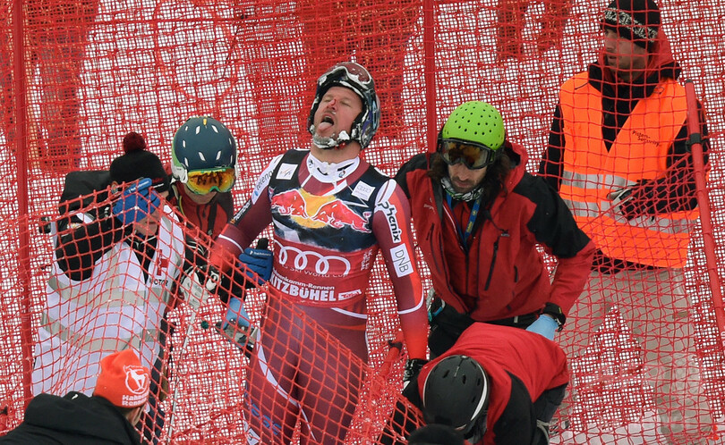【1月24日 AFP】2015-16アルペンスキーW杯は23日、オーストリアのキッツビューエル(Kitzbuehel)で男子滑降第6戦が行われたが、ここまで好調を維持していたアクセル・ルンド・スビンダル(Aksel Lund Svindal、ノルウェー)がクラッシュして膝に重傷を負い、シーズン絶望となった。