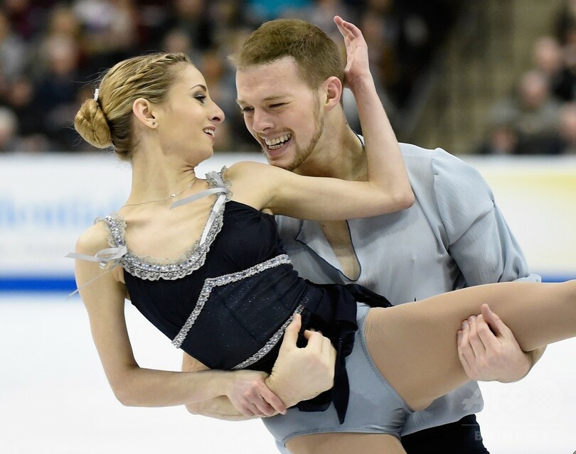 ペアでは、タラ・ケイン(Tarah Kayne)/ダニエル・オシェア(Daniel O'Shea)組が合計211.65点で優勝。アイスダンスでは、マイア・シブタニ(Maia Shibutani)/アレックス・シブタニ(Alex Shibutani)組が合計190.14点を記録して、表彰台の頂点に立った。(c)AFP