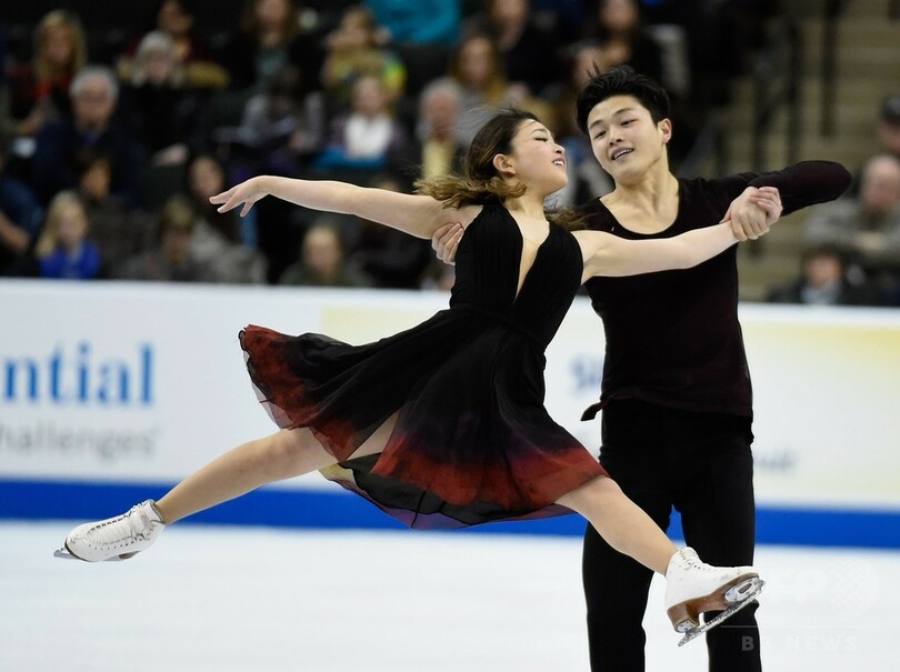 ペアでは、タラ・ケイン(Tarah Kayne)/ダニエル・オシェア(Daniel O'Shea)組が合計211.65点で優勝。アイスダンスでは、マイア・シブタニ(Maia Shibutani)/アレックス・シブタニ(Alex Shibutani)組が合計190.14点を記録して、表彰台の頂点に立った。(c)AFP
