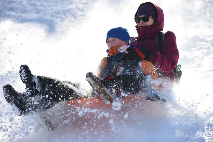 【1月25日 AFP】米東部を見舞った猛吹雪で、ニューヨーク(New York)は24日までに観測史上2番目となる積雪を記録した。子どもたちは冬のワンダーランドと化した街に大はしゃぎ。晴れ渡った空の下で雪遊びを楽しんだ。