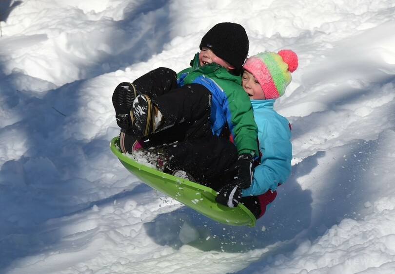 【1月25日 AFP】米東部を見舞った猛吹雪で、ニューヨーク(New York)は24日までに観測史上2番目となる積雪を記録した。子どもたちは冬のワンダーランドと化した街に大はしゃぎ。晴れ渡った空の下で雪遊びを楽しんだ。
