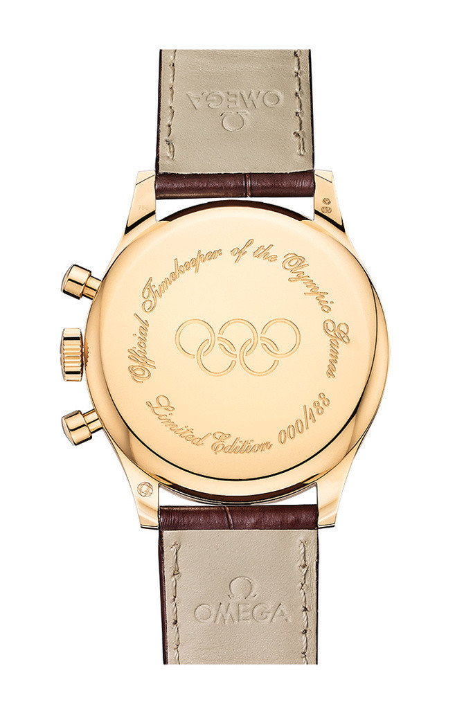 今回発売される限定モデルは、「オメガ」が初めて計時を担当した1932年のロサンゼルス五輪のクロノグラフからインスピレーションを受けて製作された。ケース素材には、メダルの金・銀・銅をイメージした、18Kのイエローゴールド、ホワイトゴールド、ピンクゴールドを各188本ずつ用意。ケースバックには限定番号と五輪ロゴのエングレービングが施されている。