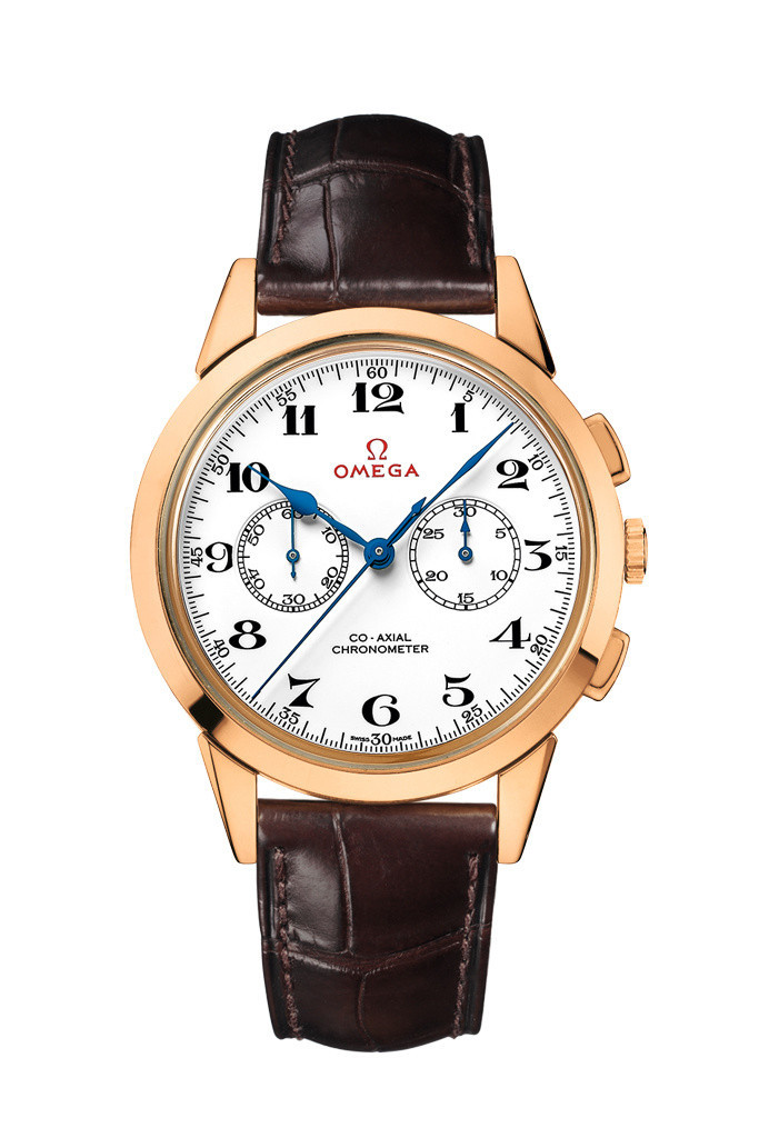 今回発売される限定モデルは、「オメガ」が初めて計時を担当した1932年のロサンゼルス五輪のクロノグラフからインスピレーションを受けて製作された。ケース素材には、メダルの金・銀・銅をイメージした、18Kのイエローゴールド、ホワイトゴールド、ピンクゴールドを各188本ずつ用意。ケースバックには限定番号と五輪ロゴのエングレービングが施されている。