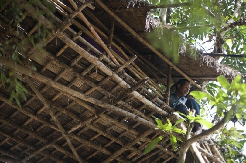 ゾウは作物を踏み荒らし、家屋を破壊し、時には人間を殺すこともあるため、村に住む人々は、地面から離れた木の上に木片や竹を使って小屋を作っている。