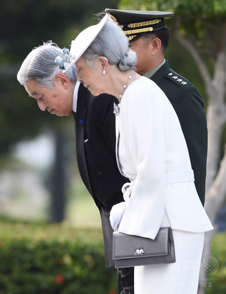 午後には、両陛下はマニラにある英雄墓地を訪れて供花し、「無名戦士の墓」の前で深々と拝礼された。この墓地は、第2次世界大戦で犠牲となったフィリピン人兵士を祭るため1947年に建てられた。(c)AFP/Mynardo MACARAIG
