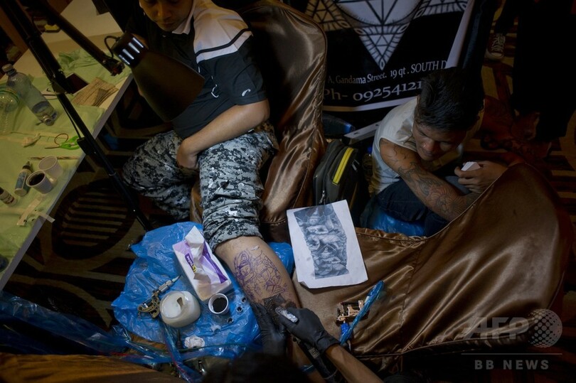 しかし最近は、タトゥー・アーティストたちが、伝統的な道具よりも安全性が高いとされる現代のタトゥー用の機器を使って古典的な図柄と模様を復活させつつある。(c)AFP