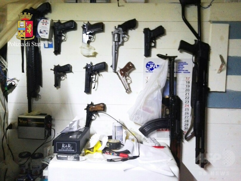 警察は1年前から付近で張り込みを続け、2人が就寝中に隠れ家を急襲。自動小銃1丁をはじめ、壁に掛けられていたライフルや拳銃を押収したという。(c)AFP/Ella IDE