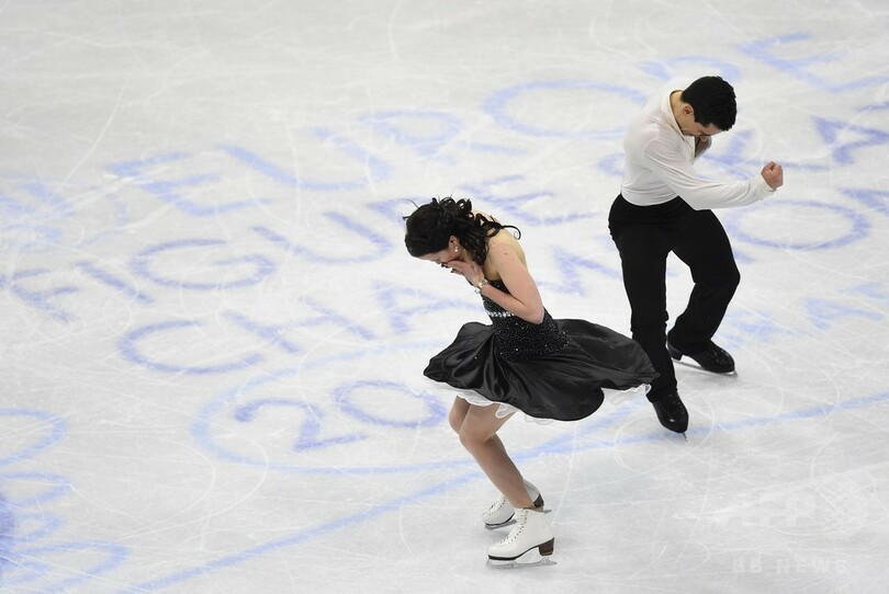 FDで強みを持つパパダキス/シゼロン組は、イタリアの作曲家エツィオ・ボッソ(Ezio Bosso)と英ジャズグループによるザ・シネマティック・オーケストラ(The Cinematic Orchestra)の楽曲に乗せて滑らかな演技を披露し、約6000人の観客からスタンディングオベーションを受けた。(c)AFP