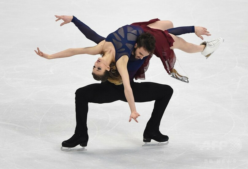 FDで強みを持つパパダキス/シゼロン組は、イタリアの作曲家エツィオ・ボッソ(Ezio Bosso)と英ジャズグループによるザ・シネマティック・オーケストラ(The Cinematic Orchestra)の楽曲に乗せて滑らかな演技を披露し、約6000人の観客からスタンディングオベーションを受けた。(c)AFP