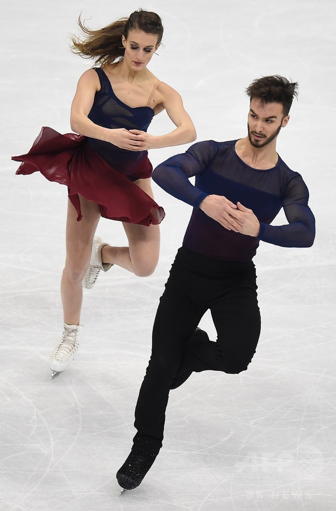 FDで強みを持つパパダキス/シゼロン組は、イタリアの作曲家エツィオ・ボッソ(Ezio Bosso)と英ジャズグループによるザ・シネマティック・オーケストラ(The Cinematic Orchestra)の楽曲に乗せて滑らかな演技を披露し、約6000人の観客からスタンディングオベーションを受けた。(c)AFP