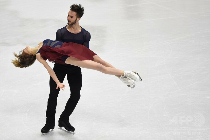 FDで強みを持つパパダキス/シゼロン組は、イタリアの作曲家エツィオ・ボッソ(Ezio Bosso)と英ジャズグループによるザ・シネマティック・オーケストラ(The Cinematic Orchestra)の楽曲に乗せて滑らかな演技を披露し、約6000人の観客からスタンディングオベーションを受けた。(c)AFP