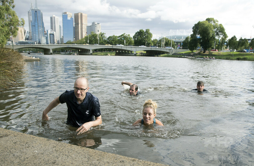 【1月31日 AFP】全豪オープンテニス(Australian Open Tennis Tournament 2016)の女子シングルス決勝で、女王セレーナ・ウィリアムス(Serena Williams、米国)を破り、四大大会(グランドスラム)初優勝を飾ったアンゲリク・ケルバー(Angelique Kerber、ドイツ)が、31日、メルボルン(Melbourne)のヤラ川(Yarra River)を泳いで、自身の快挙を祝った。