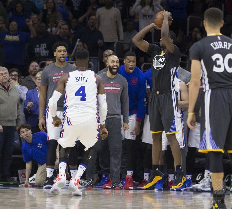 昨季のファイナル王者ウォリアーズは、第3クオーター途中に最大24点差、試合時間残り5分41秒としたところで15点差をつけ、このまま順当に勝利を手にするかのようにみえたが、そこから格下セブンティシクサーズの思わぬ反撃に苦戦を強いられ、最後はなんとか逃げ切った。