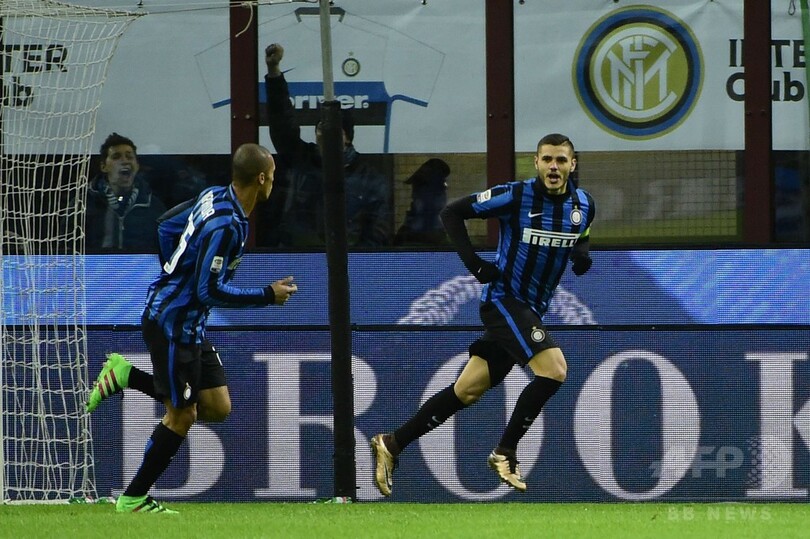 1月31日に行われたACミラン(AC Milan)とのダービーで敗れたインテルは、特に前半は得点を挙げるチャンスをことごとくつぶし、ベンチ入り禁止処分のロベルト・マンチーニ(Roberto Mancini)監督をまたも落胆させたが、後半3分にマウロ・イカルディ(Mauro Icardi)が決めたこの日唯一の得点で、なんとか勝利を手にした。(c)AFP
