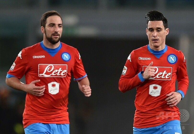 ナポリはゴンサロ・イグアイン(Gonzalo Higuain)の得点で先制すると、ホセ・マリア・カジェホン(Jose Maria Callejon)がすぐさま追加点を挙げ、ユベントス(Juventus)と勝ち点2差の首位を守った。