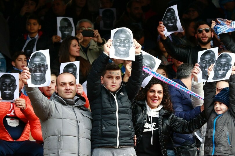 【2月8日 AFP】イタリア・セリエAでは7日、第24節のナポリ(SSC Napoli)対カルピFC(Carpi FC)戦のキックオフ前に、サン・パオロ・スタジアム(San Paolo Stadium)に詰めかけた数千人のナポリファンが、先日の試合で人種差別を受けたセネガル代表DFのカリドゥ・クリバリ(Kalidou Koulibaly)の顔写真を掲げて激励した。