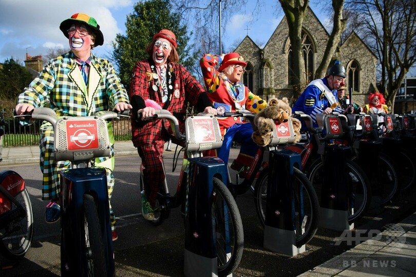 【2月8日 AFP】英ロンドン(London)東部ダルストン(Dalston)地区にある聖トリニティ教会(Holy Trinity Church)で、2月の第1日曜日に当たる7日、毎年恒例の礼拝「クラウンズ・インターナショナル(Clowns International)」が開催され、大勢の道化師たちが参加した。この礼拝は現代道化師の父と呼ばれる英道化師ジョセフ・グリマルディ(Joseph Grimaldi、1778~1837年)を祝福するために行われ、今年で70回目を迎える。(c)AFP