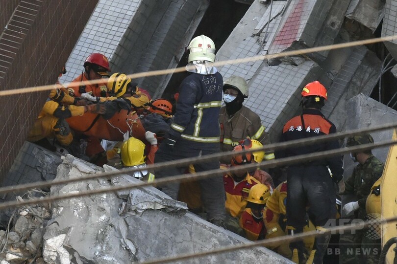【2月8日 AFP】(更新、写真追加)台湾南部で起きたマグニチュード(M)6.4の地震で倒壊した台南(Tainan)市の集合住宅のがれきから、8日に救出された生存者は計4人となった。