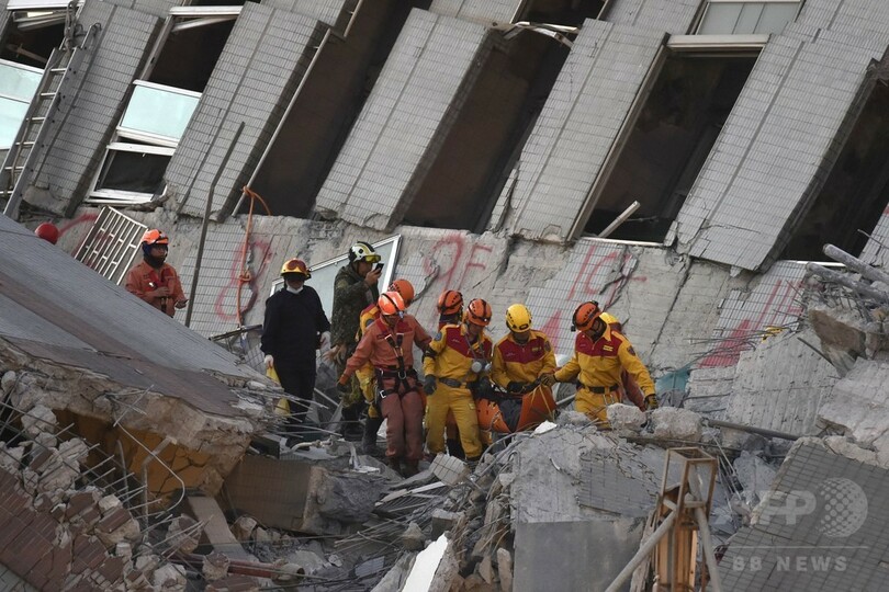 【2月8日 AFP】(更新、写真追加)台湾南部で起きたマグニチュード(M)6.4の地震で倒壊した台南(Tainan)市の集合住宅のがれきから、8日に救出された生存者は計4人となった。