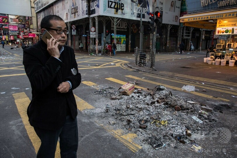 今回の騒乱は、香港では2014年に起きた大規模な民主化要求デモ以降で最も激しいものとなった。14年のデモは、中国政府が香港の次期行政長官の候補者は共産党支持者が大半を占める指名委員会による同意が必要だとしたことがきっかけで発生した。(c)AFP
