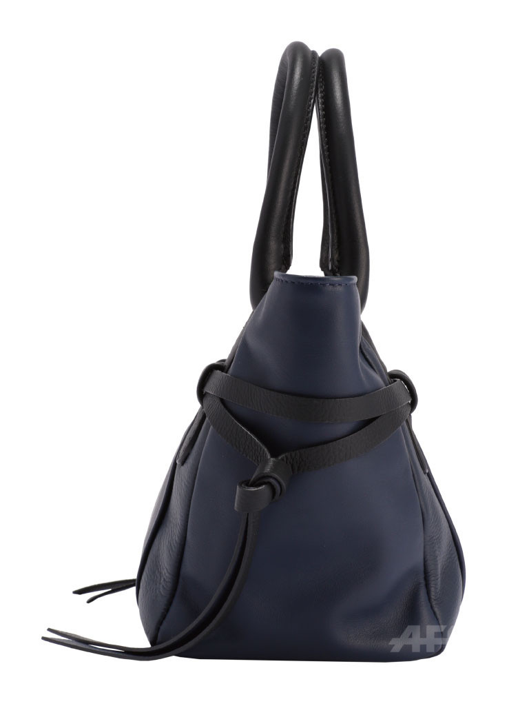 今回発売となる日本限定カラーは、ネイビーとブラックのバイカラーがクラシカルな印象。スムーズレザーとシボのあるレザーのコンビネーションによって革の表情も楽しむことができる。サイズはモワイヤン(中)・プティ(小)の2型を用意した。