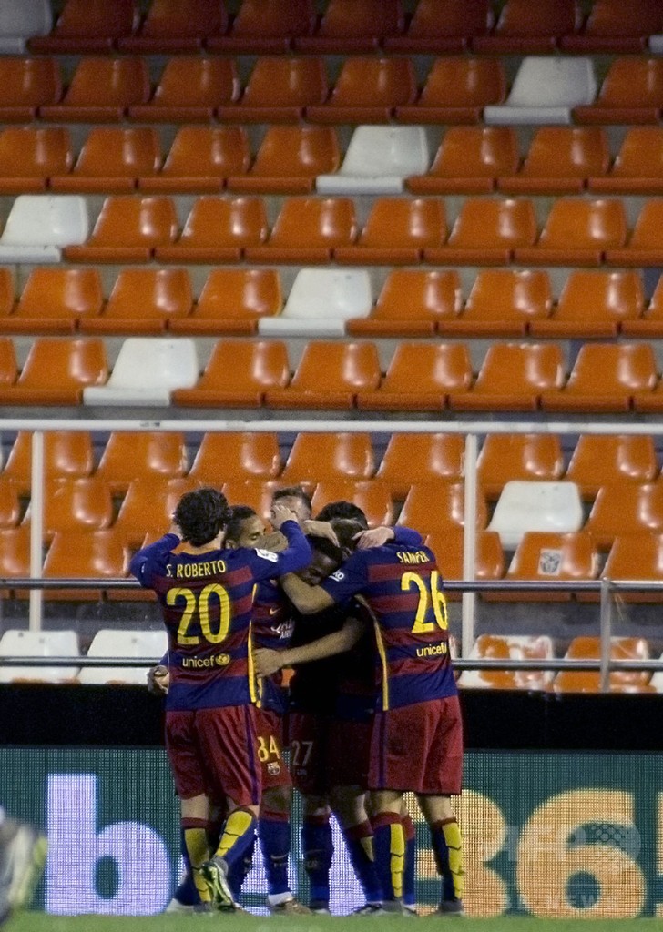 【2月11日 AFP】サッカースペイン国王杯(Copa del Rey 2015-16)は10日、準決勝第2戦が行われ、FCバルセロナ(FC Barcelona)はバレンシア(Valencia CF)と1-1で引き分け、2試合合計スコア8-1で決勝に進出した。