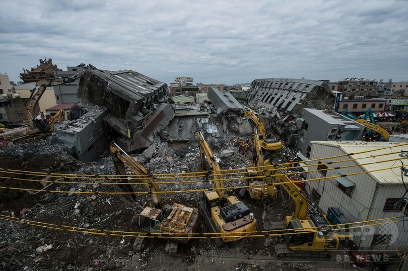 【2月10日 AFP】台湾南部を6日未明に襲ったマグニチュード(M)6.4の地震で、台南(Tainan)市の16階建て集合住宅の倒壊による死者は10日までに43人に達し、今も95人が行方不明となっている。検察当局は「手抜き工事」があったとみて、集合住宅の建設を請け負った地元建設会社の3人の身柄を拘束した。