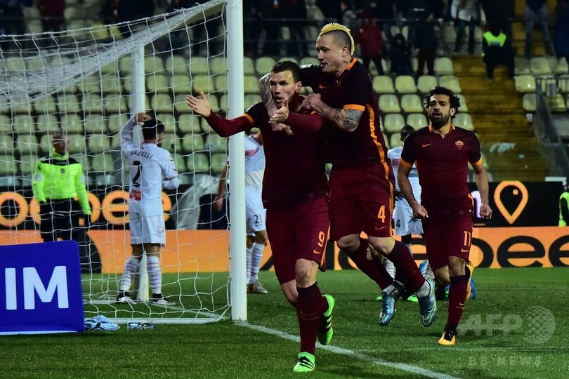 それでもローマは、同39分にエディン・ジェコ(Edin Dzeko)、その1分後にモハメド・サラー(Mohamed Salah)が立て続けに得点し、勝ち点3を確保した。
