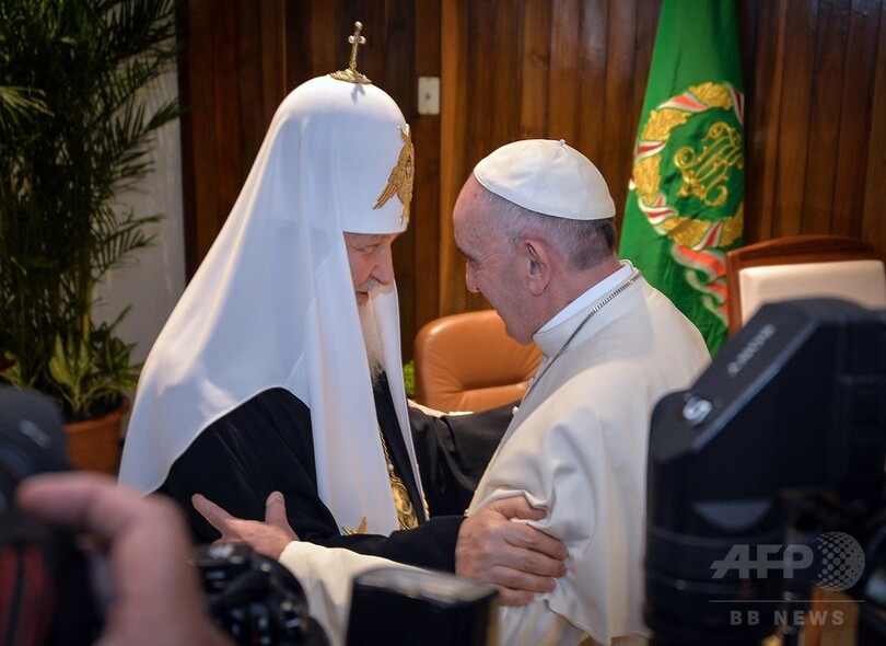 【2月13日 AFP】ローマ・カトリック教会のフランシスコ(Francis)法王(79)は12日、キューバの首都ハバナ(Havana)でロシア正教会のキリル総主教(Patriarch Kirill、69)と歴史的な会談を行い、東西キリスト教会の再統一と、中東で暴力にさらされているキリスト教徒の保護を急ぐ必要性を呼び掛けた。