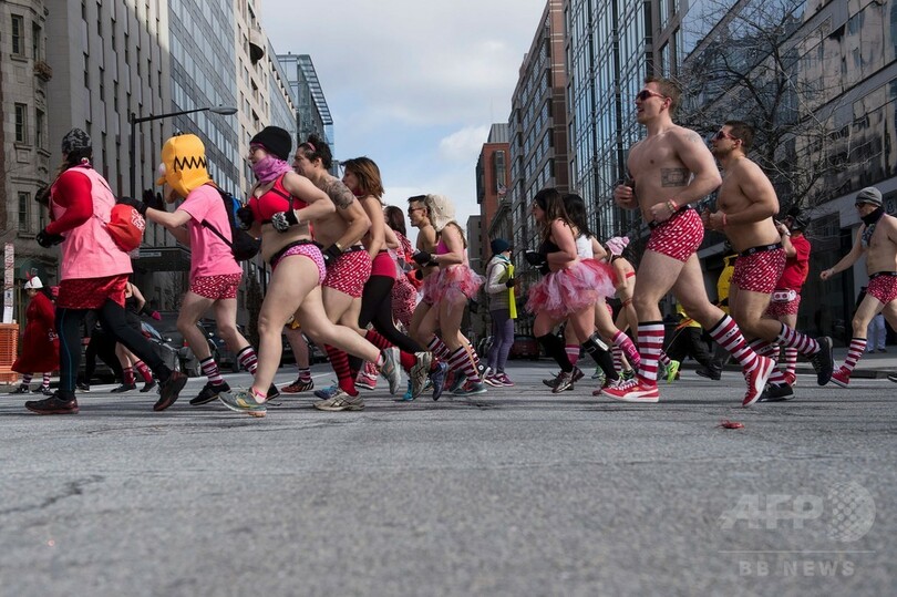 バレンタインテーマの下着姿で駆け抜ける、米首都でイベント