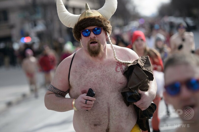 【2月14日 AFP】米首都ワシントン(Washington D.C.)で13日、チャリティーイベント「キューピッツ・アンディー・ラン(Cupid's Undie Run)」が開かれ、参加者たちは気温が氷点下6.6度という寒さの中、バレンタインをテーマにしたさまざまな下着姿で街を駆け抜けた。イベントの収益は小児腫瘍財団(Children's Tumor Foundation)に寄付される。(c)AFP