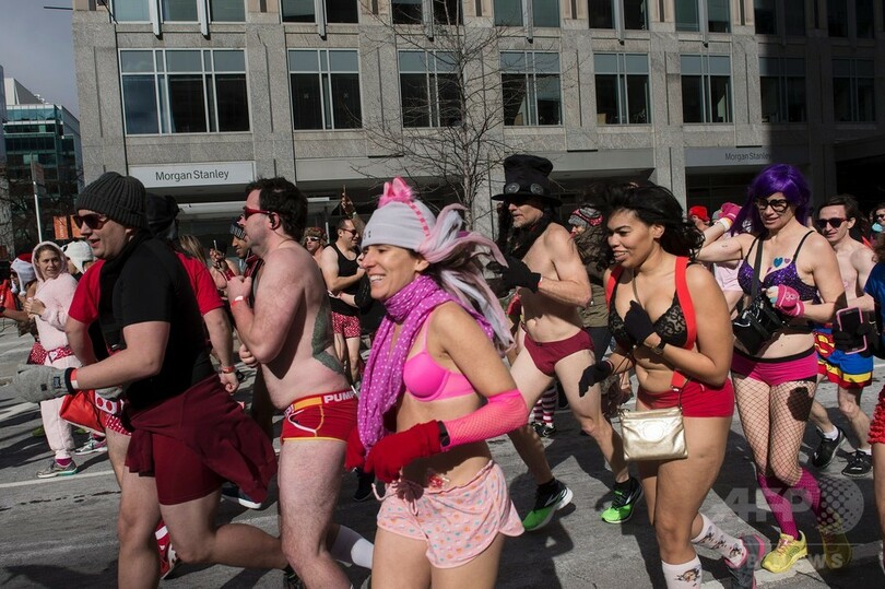 バレンタインテーマの下着姿で駆け抜ける、米首都でイベント