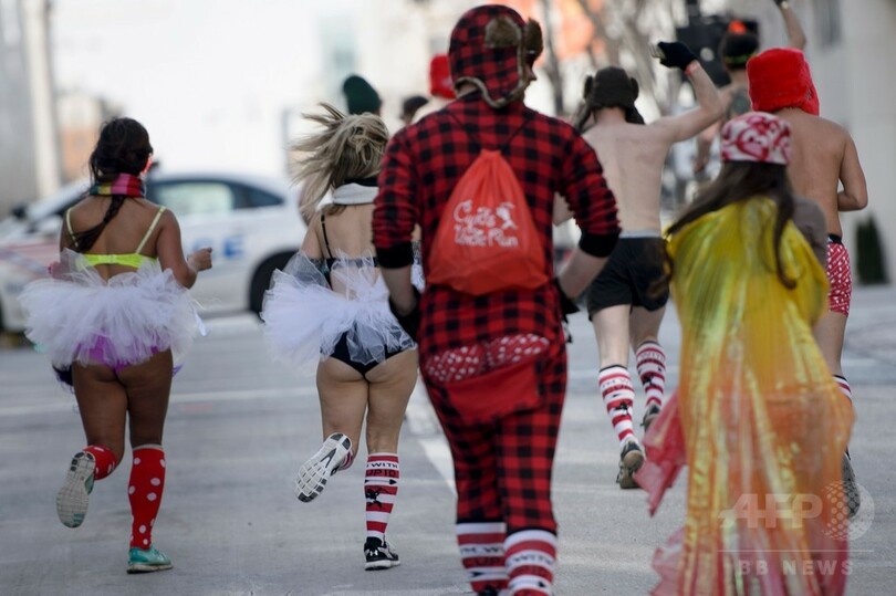 【2月14日 AFP】米首都ワシントン(Washington D.C.)で13日、チャリティーイベント「キューピッツ・アンディー・ラン(Cupid's Undie Run)」が開かれ、参加者たちは気温が氷点下6.6度という寒さの中、バレンタインをテーマにしたさまざまな下着姿で街を駆け抜けた。イベントの収益は小児腫瘍財団(Children's Tumor Foundation)に寄付される。(c)AFP