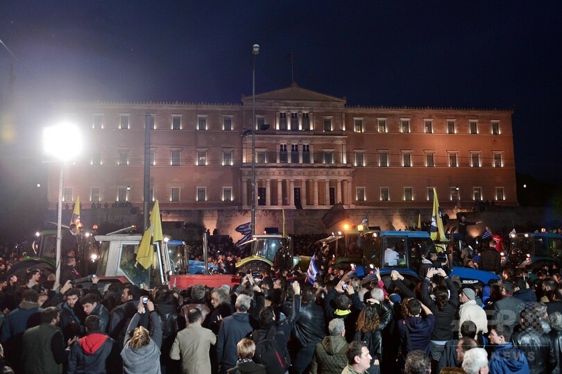 【2月14日 AFP】ギリシャの首都アテネ(Athens)市内で13日、年金制度改革に抗議する農業従事者との連帯を掲げた大規模デモが行われ、警察によると推計1万2000人が議会前のシンタグマ広場(Syntagma Square)に集まった。