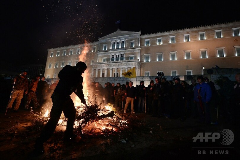 【2月14日 AFP】ギリシャの首都アテネ(Athens)市内で13日、年金制度改革に抗議する農業従事者との連帯を掲げた大規模デモが行われ、警察によると推計1万2000人が議会前のシンタグマ広場(Syntagma Square)に集まった。