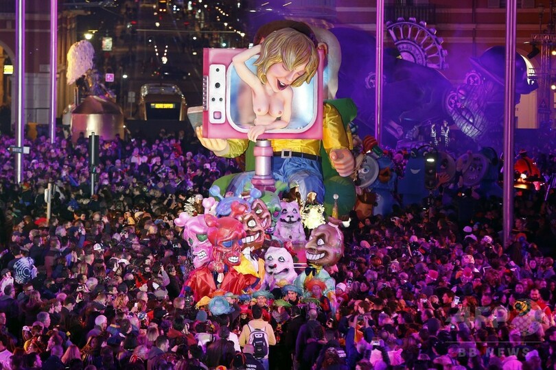 南仏ニース・カーニバル華やかに開幕、テーマは「メディア王」