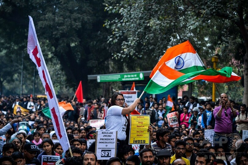 【2月19日 AFP】インド政府は18日、国内の一流公立大学20校に対し国家の団結を促すために国旗掲揚を義務付けた。一方、首都ニューデリー(New Delhi)などでは学生自治会委員長の逮捕に抗議する学生たちによる大規模なデモが行われた。