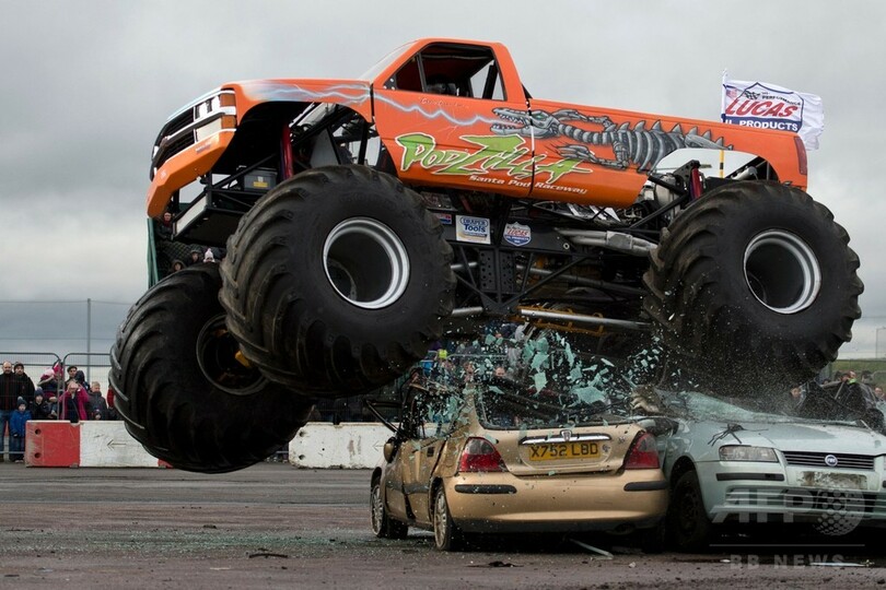 【2月22日 AFP】英イングランド(England)中部ウェリングボロ―(Wellingborough)にあるサンタ・ポッド・レースウェー(Santa Pod Raceway)で20日、自動車やバイクのスタントショー「スタント・フェスト(Stunt Fest)」が開催され、モンスタートラック、カージャンプ、スタント走行、自動車サッカーなどの出し物が行われた。(c)AFP